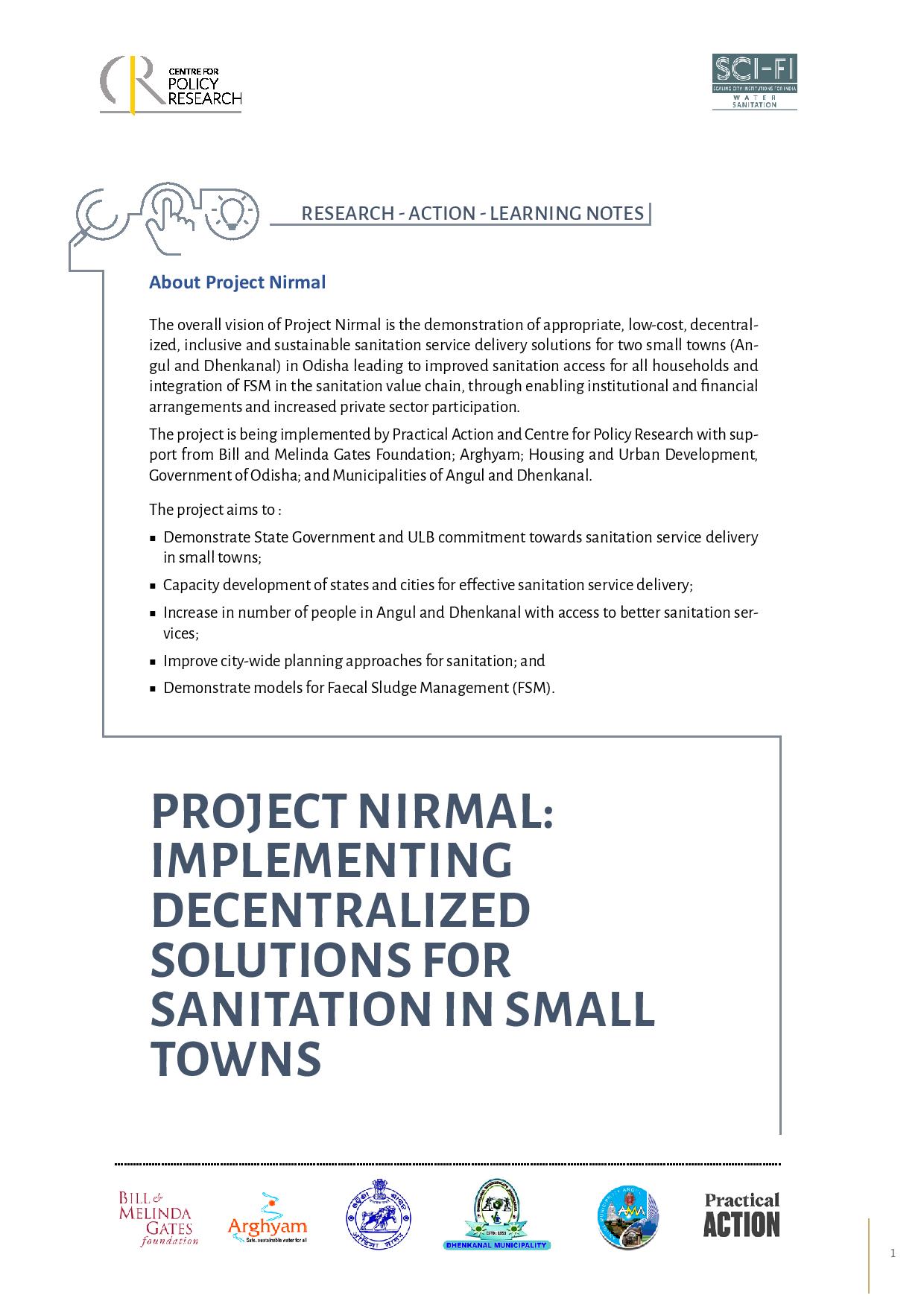 Project Nirmal: Implementing Decentralized Solutions for Sanitation In Small Towns