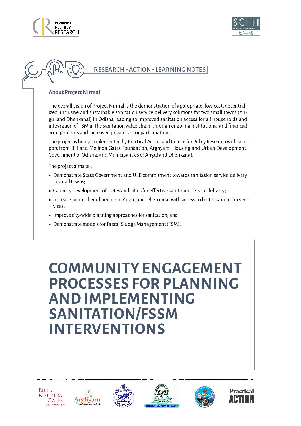 Community Engagement Processes For Planning and Implementing Sanitation/FSSM Interventions