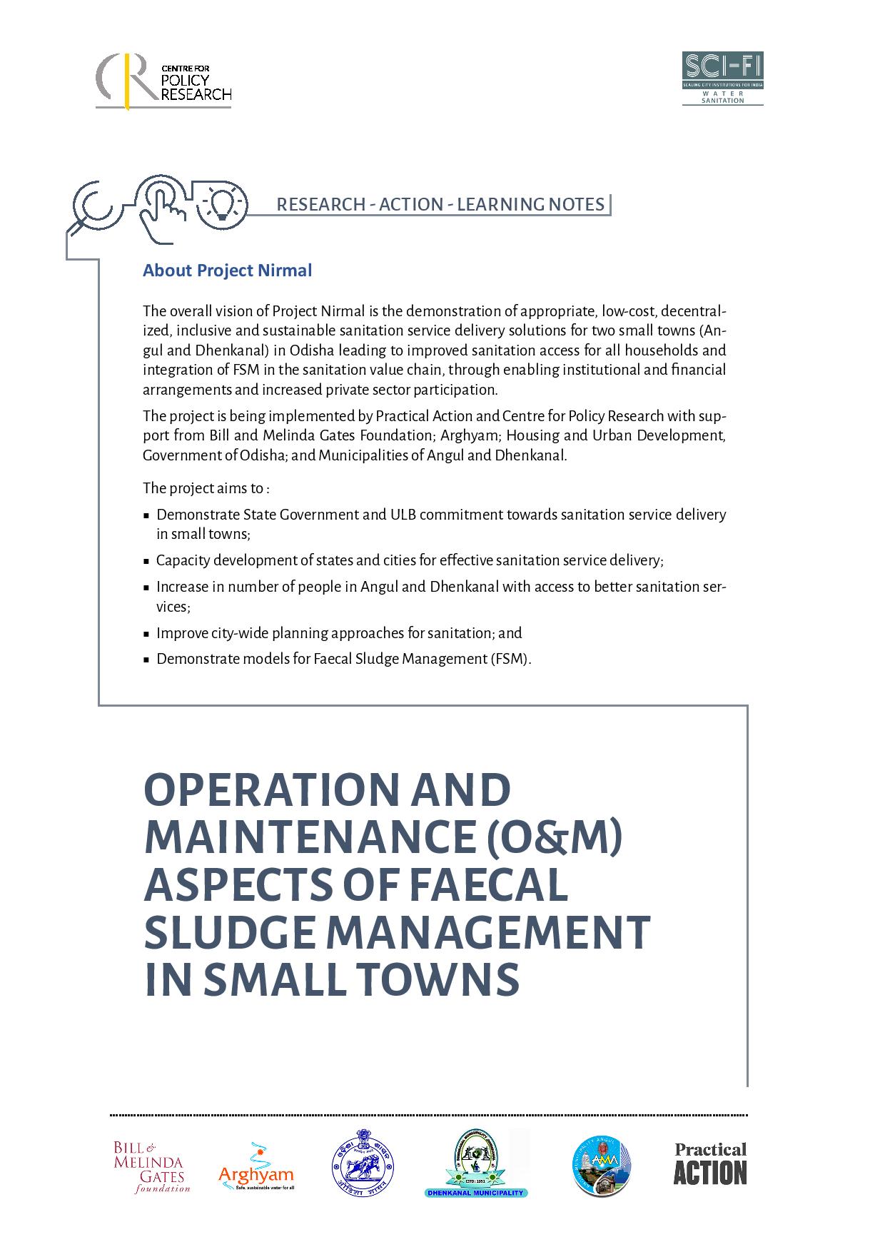 Operation and Maintenance (O&M) Aspects Of Faecal Sludge Management In Small Towns