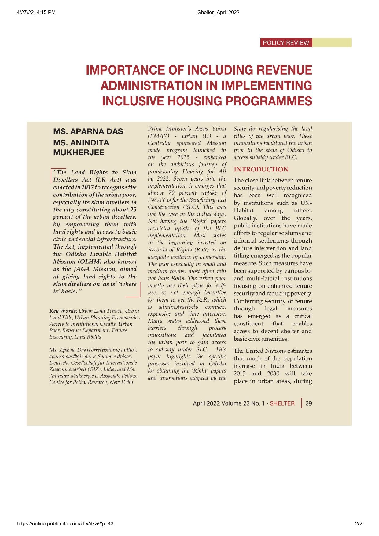 Importance of Including Revenue Administration in Implementing Inclusive Housing Programmes