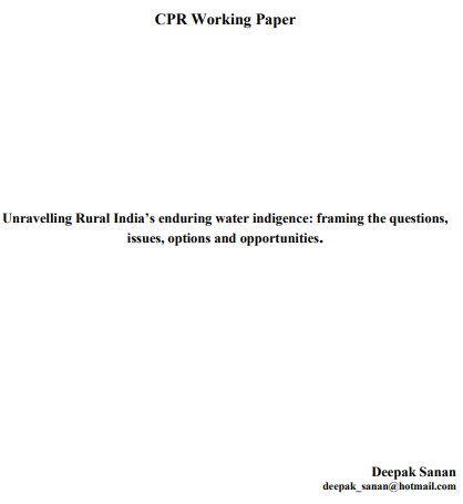 Unravelling Rural India’s enduring water indigence: framing the questions, issues, options and opportunities